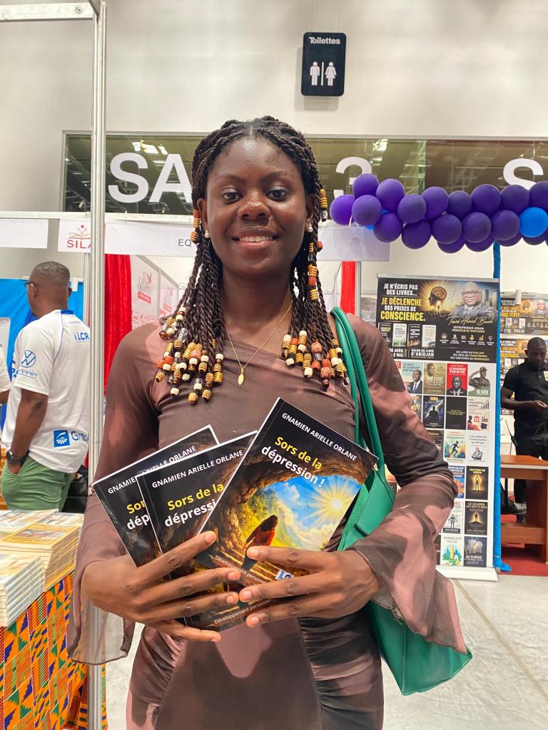 Ce mardi 28 avril, à 10h10 à peine. Le SILA vient d’ouvrir ses portes. Et déjà, une première sensation. Arielle Orlane Gnamien. 22 ans. Teint cacao, regard posé, tenue africaine. Elle n’a pas l’air de quelqu’un qui cherche à impressionner. Et pourtant.